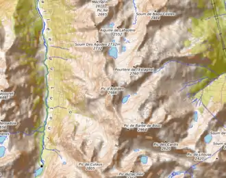 Il est situé dans le département des Hautes-Pyrénées, dans le massif d'Ardiden, entre la vallée de Lutour et la vallée de Luz-Saint-Sauveur.