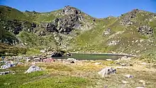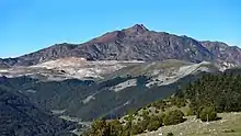 Le pic de Soularac et son versant nord occupé par l'étang Supérieur. | |