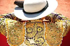 Son habit de lumières se compose d'une chaquetilla similaire à celle du matador et comme elle, brodée d'or ou de noir (bien que, parfois, elle soit brodée d’argent ou de blanc), et d'une culotte de peau tannée de couleur jaune, s’arrêtant à mi-mollet.
