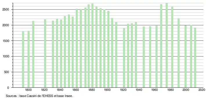 L'évolution du nombre d'habitants est connue à travers les recensements de la population effectués dans la commune depuis sa création.
