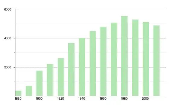 Au recensement de 2000, la population était de 5 120 hab dont 2 221 ménages et 1 481 familles résidentes. La densité était de 98,8 hab/km2.