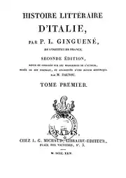 - Histoire littéraire d’Italie, Paris, L.-G. Michaud, , 2e éd. (1re éd. 1811), 9 vol., in-8° (lire en ligne).
