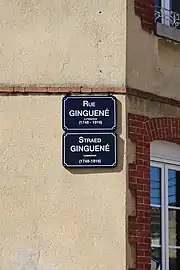 - La Biographie universelle, op. cit., p. 98 et la Biographie bretonne, op. cit., p. 804 relèvent que Napoléon affectait de prononcer son nom : « Guinguené ».