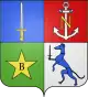 Écartelé : au 1 du quartier des comtes militaires de l'Empire ; au 2, de gueules, à la lettre N d'or, brochant sur une ancre d'argent ; au 3, de sinople, à une étoile d'or, chargée d'un B de sable ; au 4, d'argent, au lévrier rampant d'azur, colleté du même, tenant de sa patte dextre une épée de sable[1]. Livrées : jaune, blanc, rouge, bleu, noir, vert. |