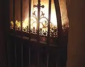 Salle des Martyrs à la Missions étrangères de Paris. Ce qui ressemble à une échelle au milieu est la cangue qu'a portée Pierre Dumoulin-Borie en captivité.