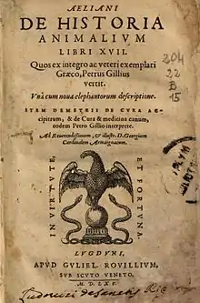 - Aeliani de historia animalium libri XVII, Lugduni apud Guliel. Rovillium, 1562