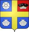 D'azur, à la croix d'or, accostée en chef de deux roses d'argent et en pointe de deux coquilles du même.[7] |