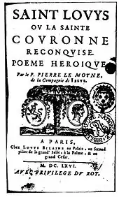 - Saint Louis, ou la Sainte couronne reconquise sur les infidèles (1653)[7],[8]