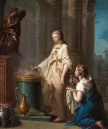 - « Un tableau, peint sur toile par le sr Nicolet, portant 2 pieds et demi sur 2 pieds, représentant une Vestale »[10].