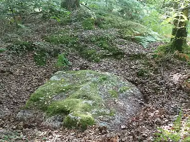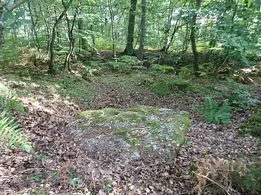 C’est un bloc de poudingue de 2 m de côté sur 0,65 m d’épaisseur. Il se trouve au milieu d’une légère dépression du sol entourée d’un tertre peu élevé, dans une partie de la forêt où l’on peut observer de nombreux fossés[2].