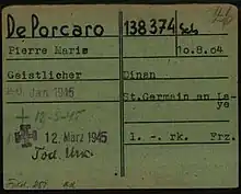 - Maurice Le Bas, Pierre de Porcaro, prêtre-ouvrier (STO), mort à Dachau, Paris, Lethielleux, 1948, p. 157.