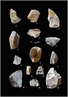 Le mode 4 correspond schématiquement au Paléolithique supérieur, où l'industrie lithique se fonde sur la production de lames longilignes et non plus d'éclats[30]. Les lames et lamelles servent de base à la réalisation d'un outillage diversifié : grattoirs, burins, pointes de projectiles, armatures, etc. Ces techniques microlithiques sont importées et, à cette époque, sont apparues depuis longtemps en Afrique.