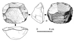 Certains de ces outils de mode 2 sont taillés en forme de disque, certains en forme de feuille pointue, d'autres enfin sont allongés et pointus à l’extrémité apicale, la base étant plutôt arrondie.