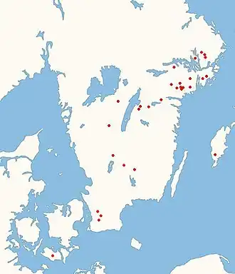 Les trente pierres qui mentionnent l'Angleterre sont traitées dans l'article pierres runiques d'Angleterre. Celles qui parlent de voyages vers l'Est, l'Empire byzantin et le Moyen-Orient sont traitées dans l'article pierres runiques varangiennes.