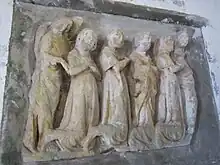 - « Bas-relief : L'Entrée au paradis de quatre personnages conduits par la Vierge et un ange », notice no PM50000828, et « Statue : Sainte Geneviève, appelée aussi Sainte Ergouëffe », notice no PM50000829, sur la plateforme ouverte du patrimoine, base Palissy, ministère français de la Culture.