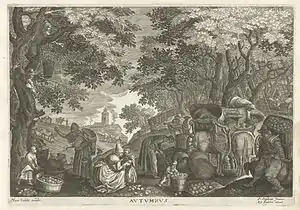 - L'Hiver, plume, encre brune, lavis brun et d'indigo, repassé au stylet pour la gravure, 0,211 × 0,338 m, Paris, Beaux-Arts de Paris, Inv. n°Mas.2006[12],[13].