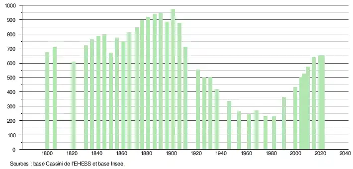 - Population municipale légale en vigueur au 1er janvier 2024, millésimée 2021, définie dans les limites territoriales en vigueur au 1er janvier 2023, date de référence statistique : 1er janvier 2021.