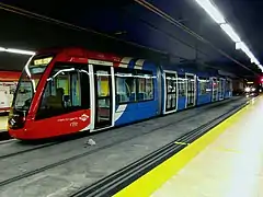 D'autre part, il abrite, en référence aux anciens tramways de Madrid, le tram 477. Produit en 1908 par la Société franco-belge La Croyére, suivant le modèle Charleroi II. Il a été rénové en 1935 et 1943 pour assurer son service jusqu'en 1962. Il est remis en état de marche en 1971 pour participer aux commémorations du centenaire du tramway de Madrid avant d'être définitivement remisé en mai 1972 lors de la fermeture du réseau de tramway d'origine de la ville. Cette voiture a été utilisée pour le tournage de plusieurs films et notamment le Docteur Jivago sortie en 1965. Avant d'être exposée dans la station, il la voiture a été restaurée, dans l'atelier des FAC, à Saragosse[5].