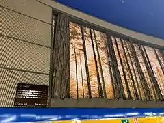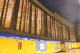 Le vestibule intérieur de la station est décoré par un mur métallique de 25 m de long sur m de haut qui représente une pinède[6].