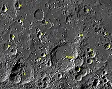 Par convention, les cratères satellites sont identifiés sur les cartes lunaires en plaçant la lettre sur le côté du point central du cratère qui est le plus proche de Pingré.