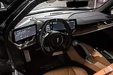 La batterie en forme de « T » est logée dans le tunnel central et bénéficie d'une capacité de 120 kWh lui procurant une autonomie de 500 km. Elle est produite en collaboration avec le constructeur croate Rimac, et elle est très proche de celle qui équipe la Rimac Nevera, tout comme les moteurs électriques et le châssis.