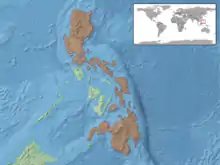 Cette espèce est endémique des Philippines. Elle se rencontre dans les îles de Mindanao, de Camiguin, de Bohol, de Luçon et de Polillo[1].