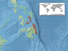 Cette espèce est endémique des Philippines. Elle se rencontre sur les îles de Mindanao, de Leyte et de Bohol[1].
