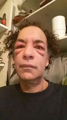 Des lésions problématiques peuvent apparaître quand la piqûre touche la paupière, ce qui est une lésion plus fréquente que les atteintes cornéennes, mais restant rare (« nécrose palpébrale » dans les cas extrêmes, habituellement déclenchée par une bactériose mais aussi parfois par une vasoconstriction-thrombose induite par le venin de certains animaux[4].