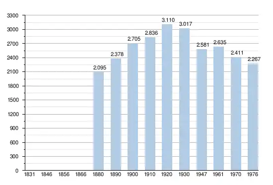 - Sources : INS, Rem. : 1831 jusqu'en 1970 = recensements, 1976 = nombre d'habitants au 31 décembre.