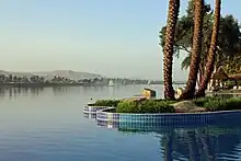 Une piscine à débordement est un type de piscine ou de miroir d'eau conçu pour donner l'illusion que la piscine fait partie à part entière du bassin où elle se trouve. Sur une face avec une vue dégagée sur l'horizon, l'eau débordant du bassin principal est récupérée en contrebas dans une gouttière d'évacuation, les bordures du bassin étant masquées. Jusqu'à un tiers plus cher qu'une piscine traditionnelle, ce type de piscine est souvent associé au luxe.