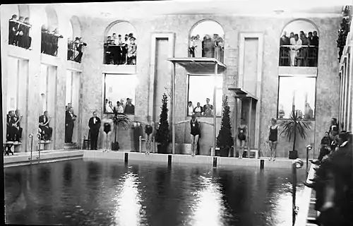 Le premier étage de l'édifice comprend un bassin de 25×10 mètres, deux saunas et des vestiaires. Le deuxième étage a des cabines de repos, des saunas et des cafés.