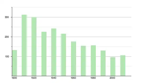 | 1950 | 215 | ▼ −11,16 % | |