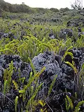 Les lichens sont généralement les premiers à s'installer, suivis par des fougères puis par une végétation arbustive ou arborée. Le phénomène est peu sensible en altitude où les conditions climatiques sont rudes et où les buissons restent très clairsemés, mais en partie basse la forêt reprend en quelques dizaines d'années possession du terrain. Dans cette dynamique d'installation, les espèces pionnières indigènes comme les bois de rempart se font aujourd'hui le plus souvent supplanter par des espèces exotiques envahissantes comme les filaos, les goyaviers de Chine ou les bois chapelet.