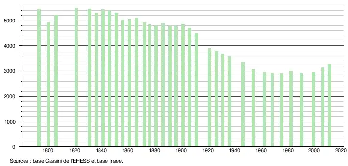 L'évolution du nombre d'habitants est connue à travers les recensements de la population effectués dans la commune depuis 1793. À partir du , les populations légales des communes sont publiées annuellement dans le cadre d'un recensement qui repose désormais sur une collecte d'information annuelle, concernant successivement tous les territoires communaux au cours d'une période de cinq ans.