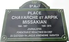 2. « 2022 DU 55 Dénomination place Chavarche et Arpik Missakian (9e). », sur paris.fr, (consulté le )