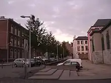 Une annexe du début du XXe siècle d'une école de la ville de Liège, la collégiale Saint-Barthélemy et son ancien presbytère (école primaire Saint-Thomas) cernent la place arborée au pied des Coteaux de la Citadelle.