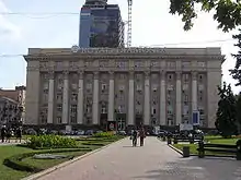 Il se trouve du côté sud de la place. La façade comprend dix portiques puissants d'ordre corinthien. Les colonnes atteignent le sixième étage, au-dessus duquel se trouve une corniche. Il a été construit par V. Orekhov et V. Kostenko.