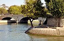La place Louis-Aragon surplombe un espace sur berges auquel on peut accéder par des escaliers assez proches.