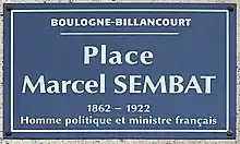 Plaque Place Marcel Sembat - Boulogne-Billancourt.