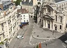 Place Sainte-Geneviève : sortie de la messe de l'église Saint-Étienne-du-Mont.
