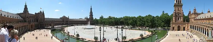 - (es) Cet article est partiellement ou en totalité issu de l’article de Wikipédia en espagnol intitulé « Plaza de España (Sevilla) » (voir la liste des auteurs).