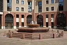 La fontaine de Bologne est aménagée en 1991 sur les plans des architectes de la SCP Bello. Ses formes rappellent le « griffoul » de la place Saint-Étienne. Elle est bâtie en béton couvert d'un plaquis de dalles de granit rouge de Porto. Un socle de trois marches monte à une cuve octogonale, qui reçoit l'eau par débordement d'une cuve, également octogonale, plus petite. Au centre s'élève un obélisque[2].