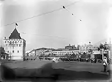 En 1935-1937, l'institut de Léningrad « Giprogor » a développé un plan général pour la ville socialiste de Gorki (le nouveau nom de Nijni Novgorod à l'époque soviétique), ce qui impliquait un changement radical dans la structure de la planification existante. Un plan d'aménagement de la place Soviétique a donc été conçu afin d'augmenter considérablement sa superficie par la démolition de certains des murs et des tours du kremlin. En effet le kremlin était considéré à l'époque comme « un monument à la féodalité avare et à l'autocratie tsariste, témoin de la pages terribles d'un passé sanglant ».