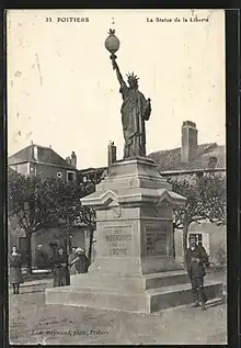 En 1903, une réplique de la Statue de la Liberté de Bartholdi est financée par les francs-maçons et installée au centre de la place[4]. La loge maçonnique de Poitiers nommée La Solidarité est située dans une rue adjacente, Rue du Trottoir[1].