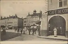Du 17 février 1906 au 1er août 1914, le tramway d’Épinal avait deux lignes, dont celle de Gare – Poissompré qui passait et desservait la Place des Vosges pour 15 centimes[5].