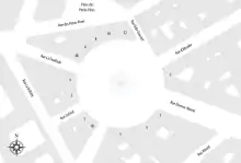 En partant du nord, et dans le sens des aiguilles d'une montre, la place donne accès aux voies suivantes :