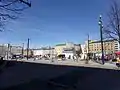 En bordure de la place se trouve l'ancien bâtiment de la KOP et l'hôtel de ville. Sur la colonne au nord de Mariankatu on peut voir l'église de la Croix et la mairie de Lahti sur la colonne au sud.