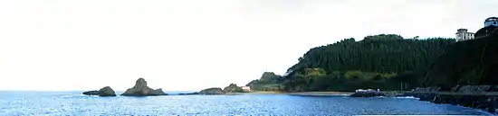La partie est de la plage, une fois dépassé le tronçon de roches, s'ouvre sur la rasa mareal (plateforme rocheuse érodée par la mer et qui s'élève juste au-dessus des eaux) est prolongée par la côte guipuscoanne. Dans cet espace se trouvent deux petites criques dont les eaux, à mer ouverte, améliorent considérable la qualité. Dans ces espaces est permis le naturisme[11]. De là à l'est, vers Mutriku, s'étend l'espace connu comme sept plages (Zazpi hondartza ou zazpi plaia en euskara) qui est l'espace pur de plate mareal de l'ouverture sous les falaises. Espace accessible en marée basse et d'une grande richesse piscicole