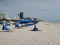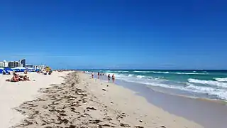 Les plages de Miami de la presqu'île de Miami Beach en Floride, longent sur plusieurs dizaines de km les grands boulevards Collins Avenue ou Ocean Drive, de North Beach (en), Mid-Beach (en), et South Beach (SoBe), face à l'océan Atlantique.