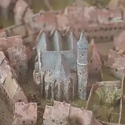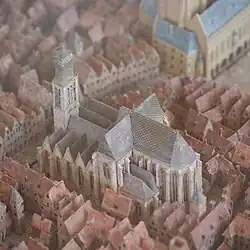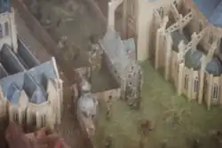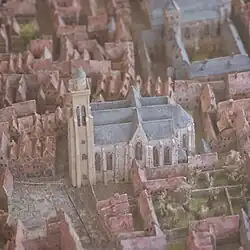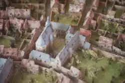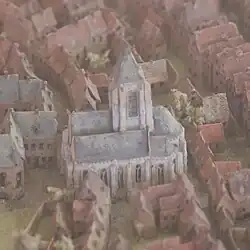 La collégiale Saint-Pierre n'est plus en fonction à cette époque, elle fut désacralisée et ses vestiges servent d'infirmerie à l'abbaye Saint-Vaast |